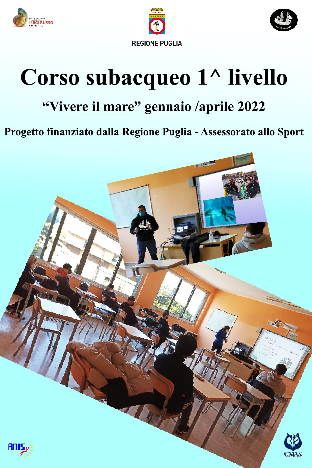Il progetto ha promosso l'attività subacquea come attività sportiva capace di favorire l'integrazione sociale, la conoscenza di sè e dei propri limiti, ha stimolato la crescita dell'autocontrollo e incoraggiato la conoscenza e il rispetto del mondo acquatico come bene comuna da tutelare.