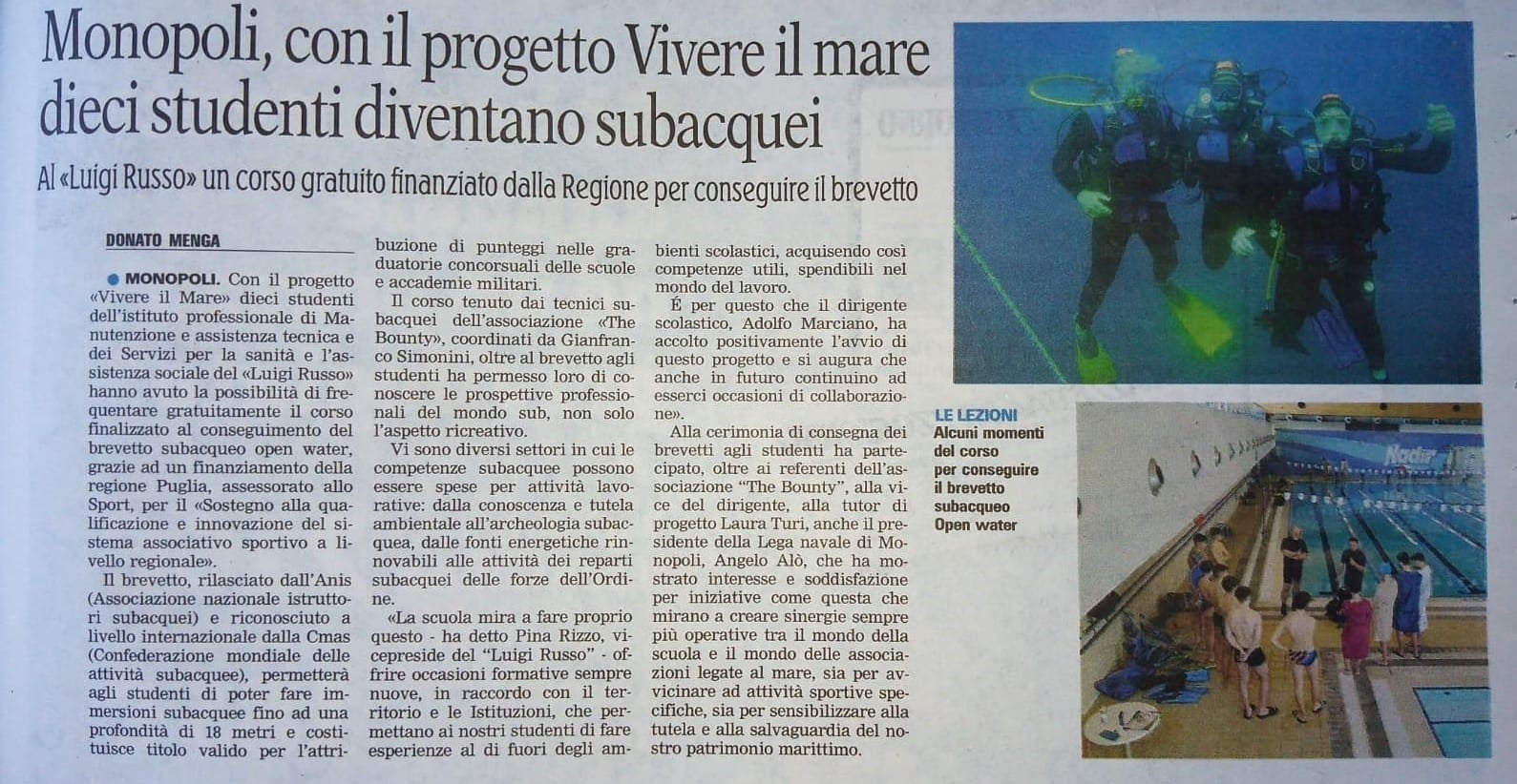 è stato rivolto a dieci studenti dell'Istituto Professionale IISS Luigi Russo di Monopoli.