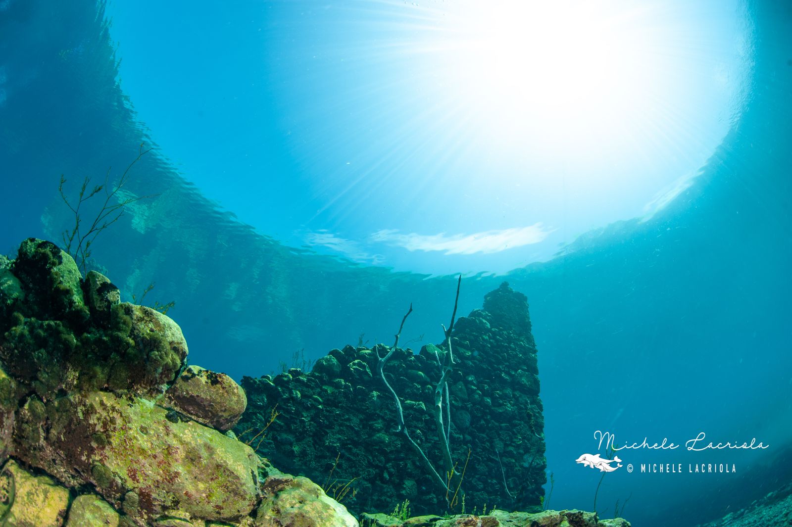 Anche dalla superficie è possibile vedere i mulini sommersi a bordo di una imbarcazione con carena completamente trasparente