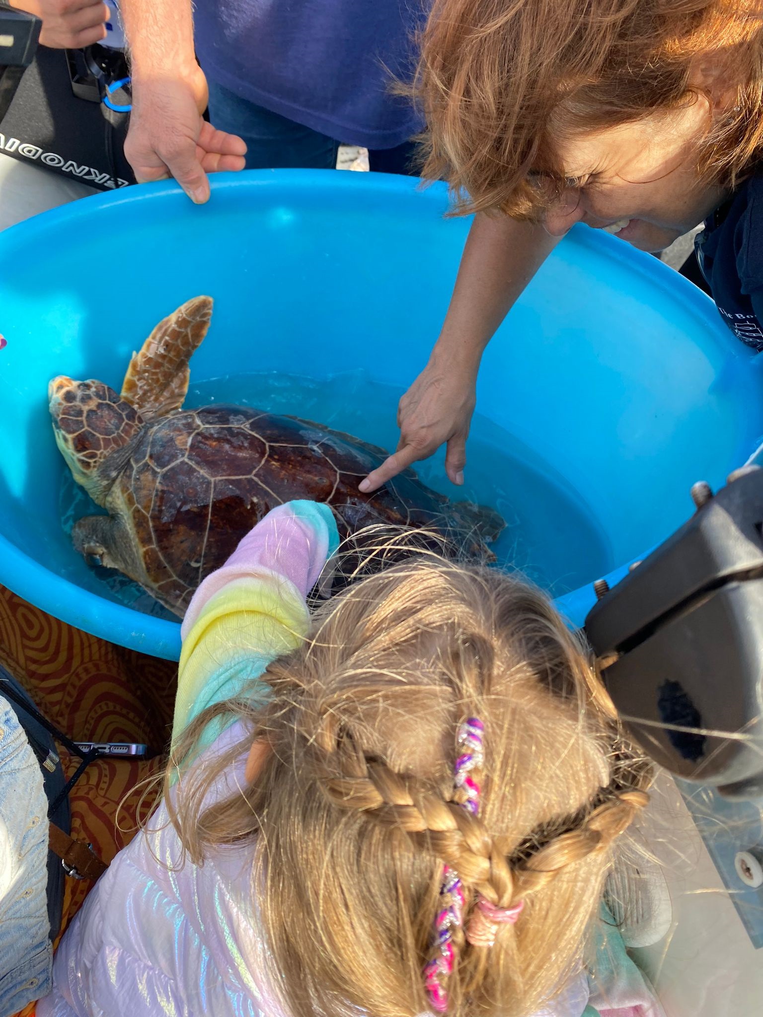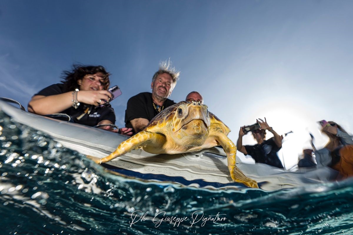 Le tartarughe portate sul bagnasciuga di Cala Paguro (Cala Paura) dove i bimbi hanno potuto vederle da vicino e ascoltato le spiegazioni. Dopodiché sono state caricate su imbarcazioni e portate a largo per liberarle direttamente in mare aperto ed evitare quindi che possano andarsi ad incagliare in reti fantasma.